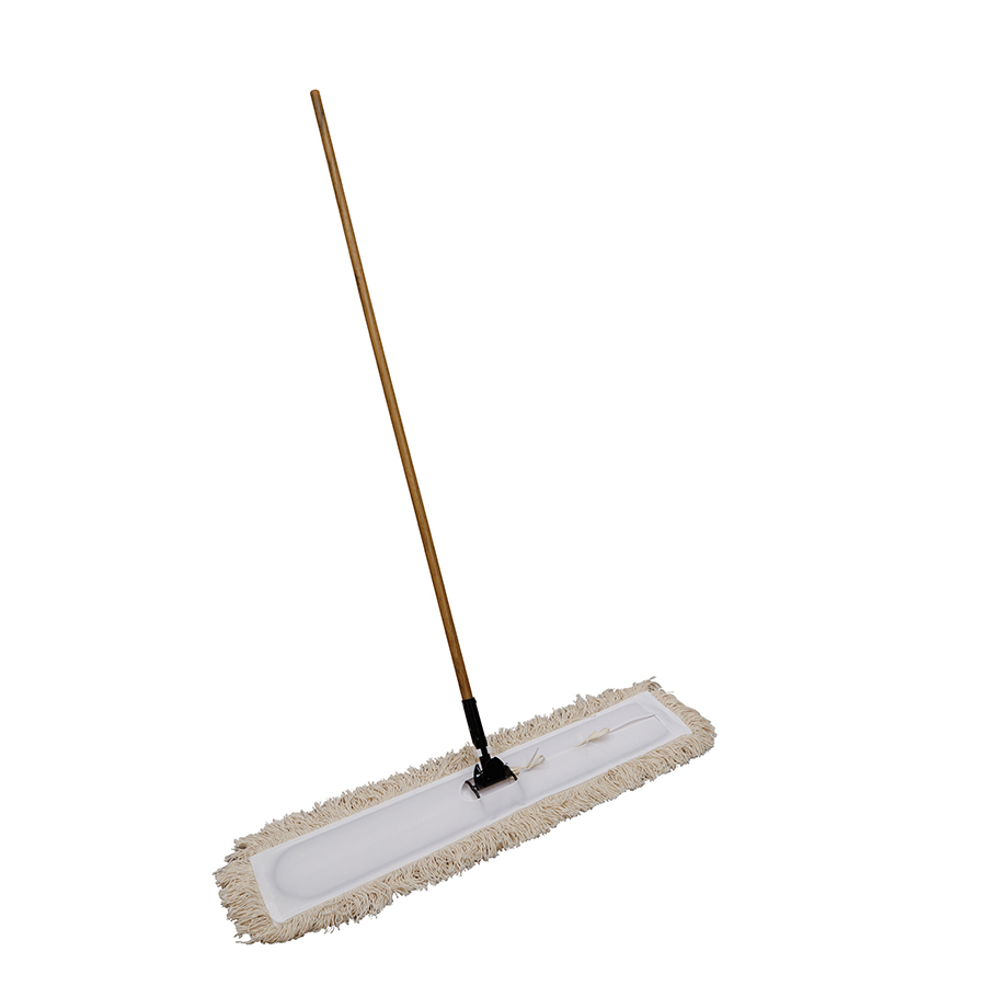 • This industrial white approach mop is made of durable non-looped cotton strands that easily lift away dirt and dust. Recommended for wood approaches. Machine-washable.