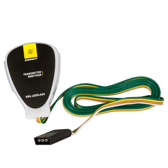 The transmitter is equipped with a 20-feet cord and a 4-way flat trailer end plug for connection to any standard 12V automobile lighting system. It offers high intensity pairing transmitter distance of 65 feet.