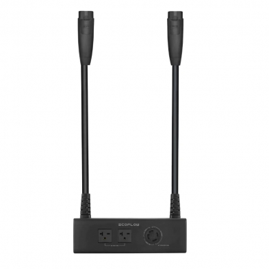 • Whole-home backup power: Connect your transfer switch/power inlet box and double voltage hub with an L14-30R to L14-30P generator cord to keep essential circuits running. This cord is available with the Advanced Kit (2 x DELTA Pros + Double Voltage Hub).
