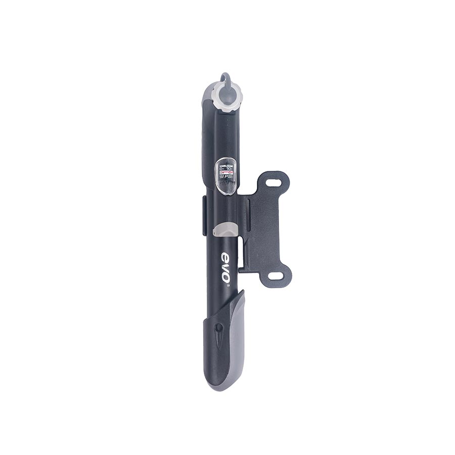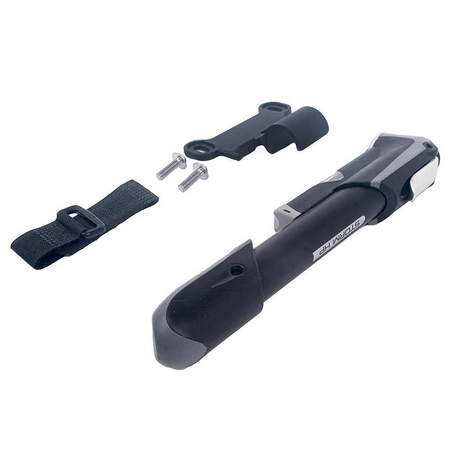 When the unexpected deflates your ride, rise above with the Evo Storm HP Mini Pump. Crafted with precision, its robust aluminum barrel ensures durability while the matching aluminum lever and valve cap highlight its quality craftsmanship. Check your tire pressure with ease, thanks to its built-in inline gauge. The SoftGrip handle ensures comfortable and efficient pumping, even at its maximum capacity of 100 psi. With a reversible valve, switch effortlessly between Schrader and Presta, ensuring a versatile fit for a range of bikes. Don't be deceived by its ultra-compact size of just 7.5'' (190mm); this mini pump packs a mighty punch. Your journey, uninterrupted – every pump includes a frame mount bracket, screws, and an optional strap, keeping you prepared for any cycling adventure. With Evo Storm HP, ride on with confidence.