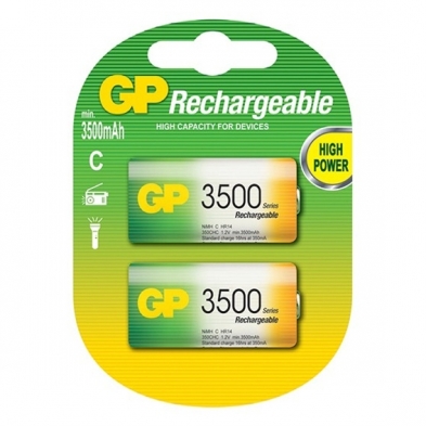 GP's Ni-MH rechargeable batteries are especially designed to meet the most stringent needs of today's high drain applications such as digital cameras. Up to 1000 discharge / recharge cycles. Features: -1.2V 3500mAh Ni-Mh -Card of 2