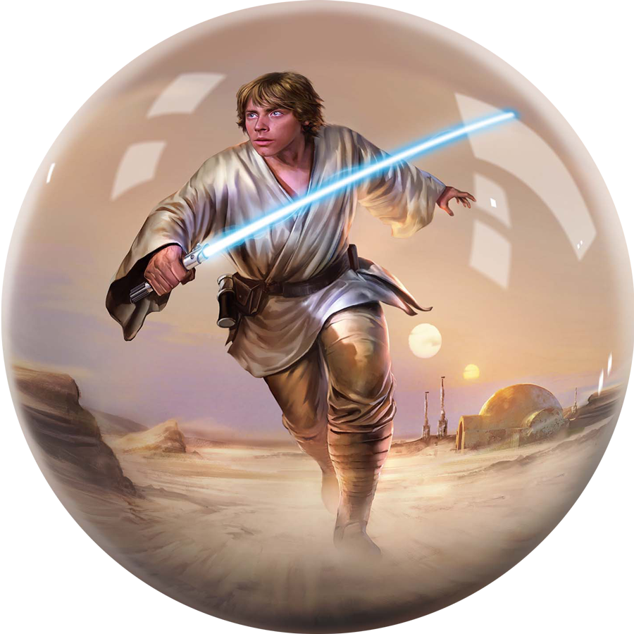 Show off your love for Star Wars out on the lanes with this awesome Luke Skywalker bowling ball! This ball is perfect for bowlers of all ages. This ball is made out of a polyester material, making it great for a wide variety of skill levels. If you are looking to have some fun while bowling, this bowling ball is the perfect option to show your love for this legendary character and have a great time while doing it. Strikeforce Bowling, LLC. is an officially licensed partner of Disney, Lucas Films, and Marvel.