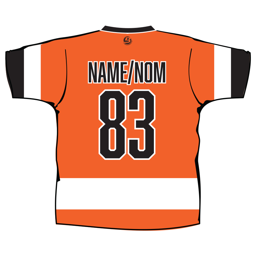 Your name will appear in CAPS on the back of the shirt. / Votre nom apparaîtra en MAJUSCULES au dos du chandail.