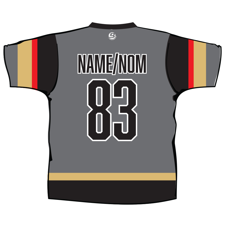 Your name will appear in CAPS on the back of the shirt. / Votre nom apparaîtra en MAJUSCULES au dos du chandail.