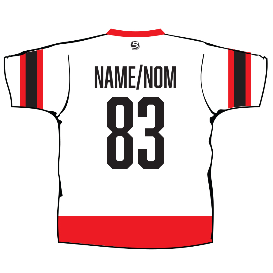 Your name will appear in CAPS on the back of the shirt. / Votre nom apparaîtra en MAJUSCULES au dos du chandail.