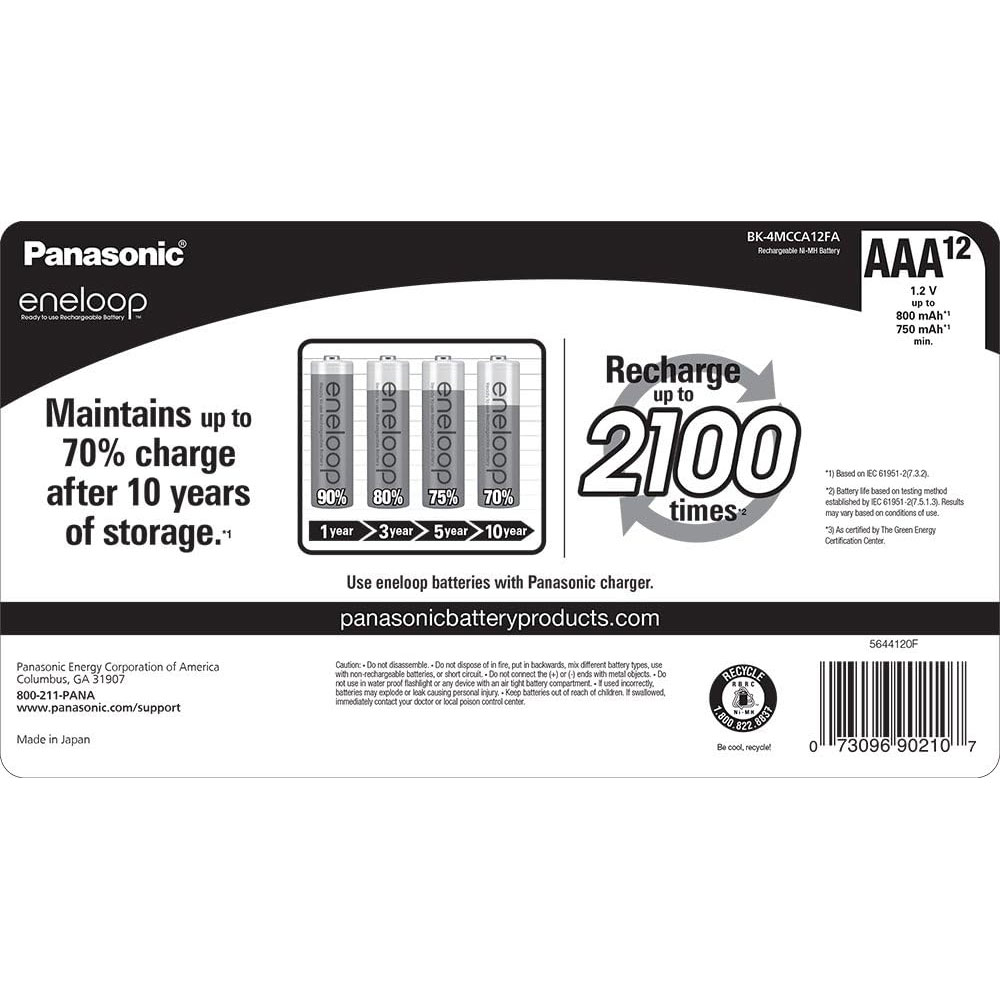 BK4MCCA12FA Panasonic Eneloop Ni-Mh Pre-Charged Rechargeable AAA Batteries - 12 Pack
