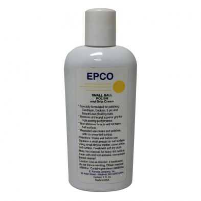 Spécialement formulé pour nettoyer les boules de quilles-chandelles, de petites quilles, de cinq quilles et de mini bowling et les boules de pétanque/boulingrin. Une utilisation répétée aide à maintenir un éclat brillant et une adhérence supérieure pour des performances plus élevées tout en empêchant l'accumulation de résidus. Le poli d'Epco n'est pas destiné à être un nettoyant robuste. Nettoyez d'abord les boules de quilles avec une formule non abrasive, un nettoyant sans solvant.