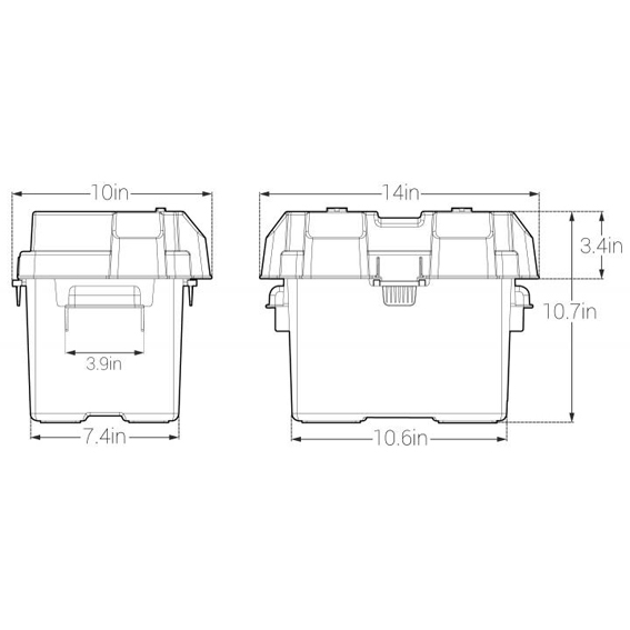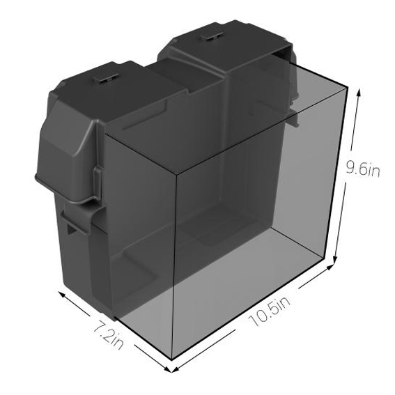 Cette boîte de batterie durable conserve ses propriétés d'impact jusqu'à-20F et est également résistante aux UV, au pétrole et a l’essence. Ce boîtier a couvercle enclenchable a onglets de verrouillage fixe le couvercle solidement sur le boîtier de la batterie.
