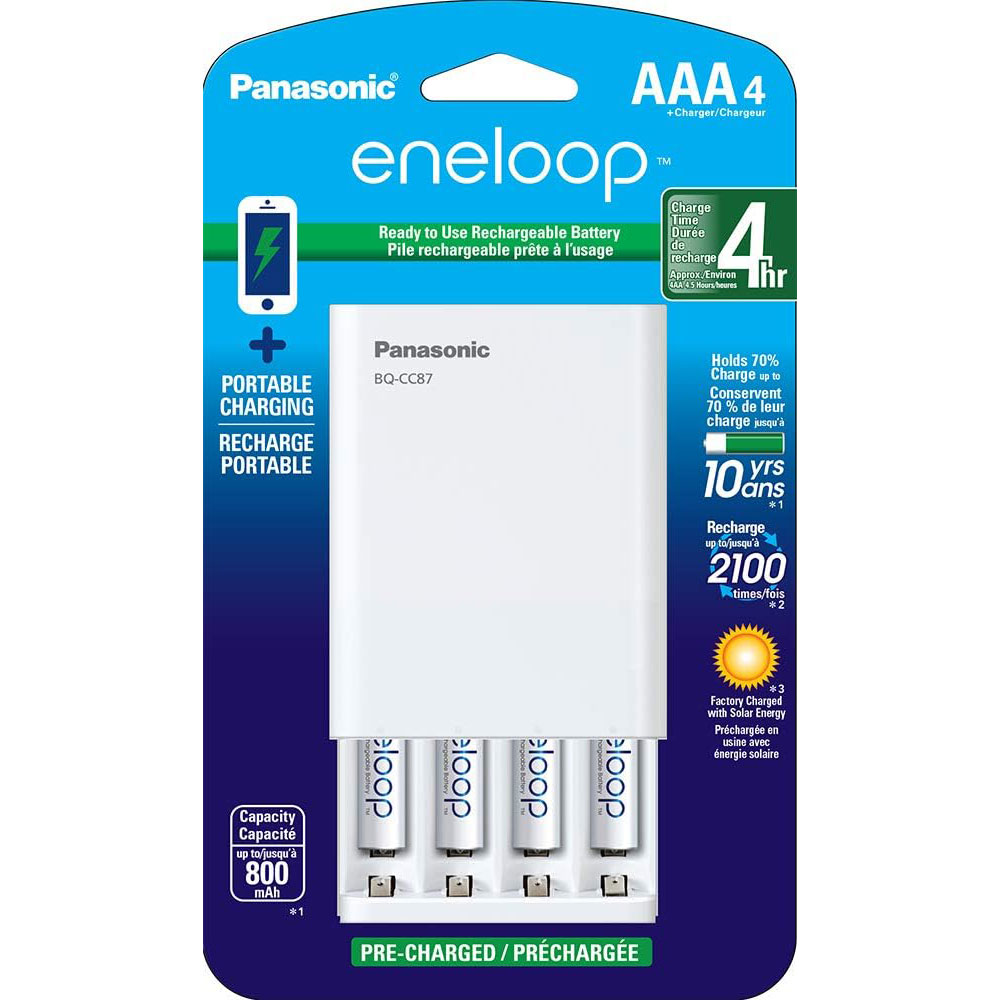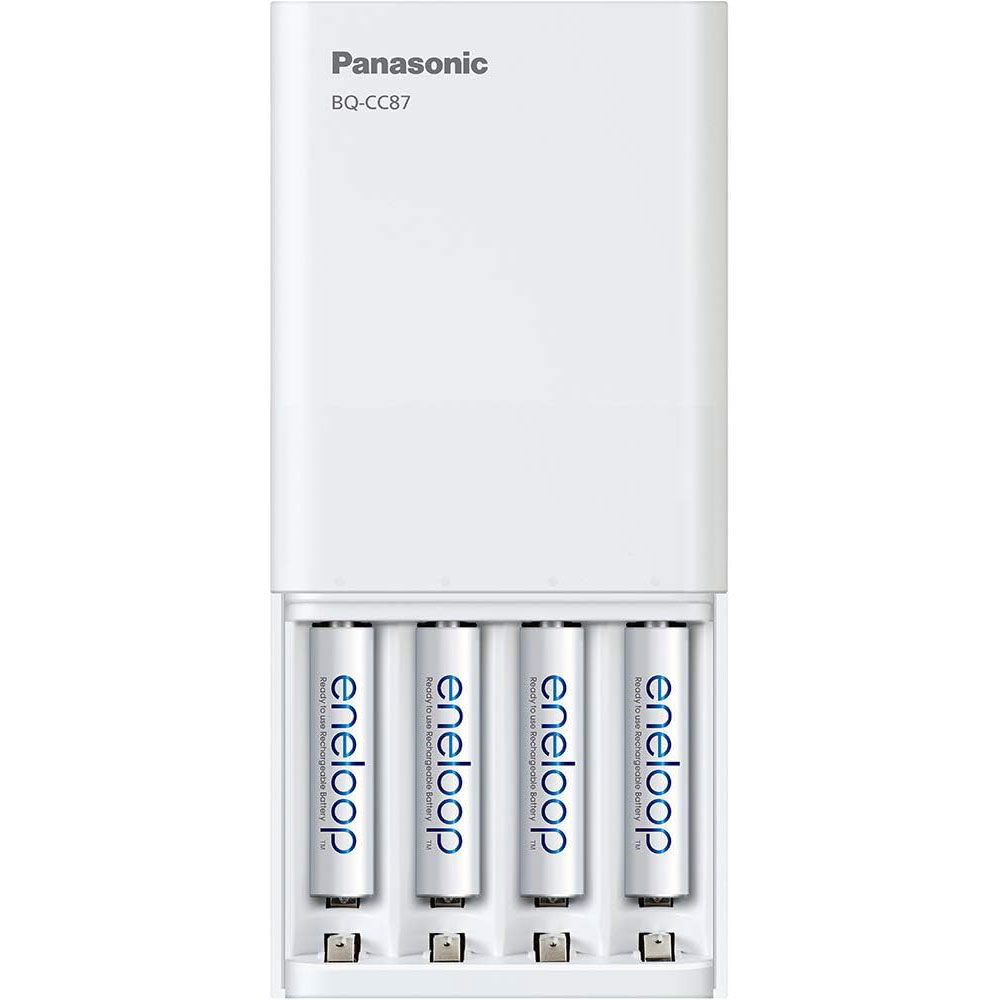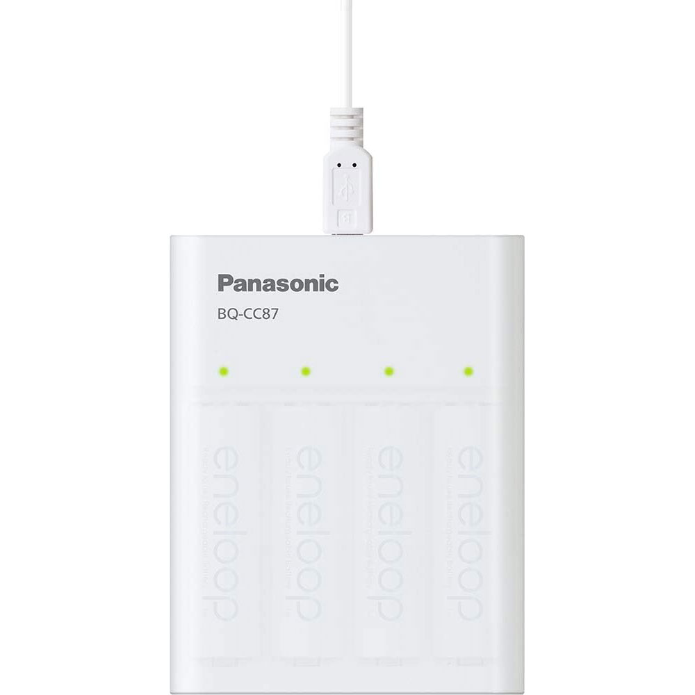 K-KJ87M3A4BA Chargeur de batterie individuel avec technologie de chargement portable et 4x AAA Panasonic eneloop
